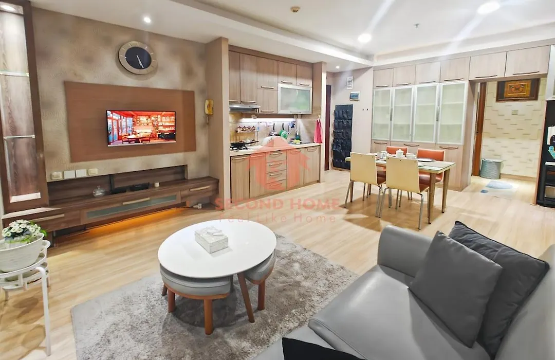 Strategic 3Br Casablanca Mansion With Pool & Wi-Fi By 2Ndhome apartment includes a balcony, a living room, and a fully equipped kitchen with an air conditioner for utmost comfort.
